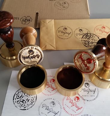 De stempel plaats u in een op maat gemaakt messing houder dat voorzien is van een stempelkussen. Deze stempelkussen zorgt ervoor dat de stempelplaat wordt voorzien van inkt.