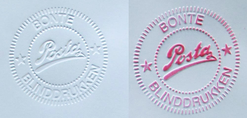 Werkwijze: Maak eerst een preegafdruk in het papier, daarna de afdruk tamponeren met de preegbeïnkter.