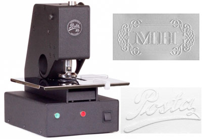 Een elektrische blinddrukpers voor veelvuldig gebruik.