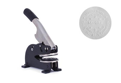 Preegstempel gemonteerd in een middelbereik blinddrukpers, voorzien van uw eigen logo, wapen(2d) of afbeelding.