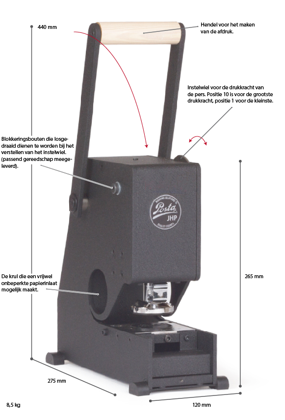 - Afmetingen blinddrukpers (lxbxh): 29 x 25 x 41 cm