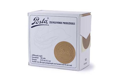 Goudkleurige preegzegels, een leuke blikvanger op uw correspondentie en uw documenten.
