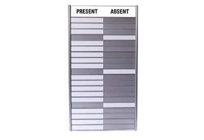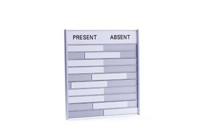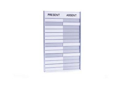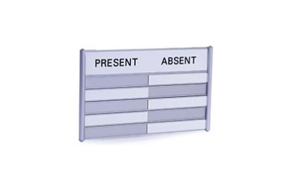 Present-Absent bord Wit-Zwart, een witte bord met zwarte tekst