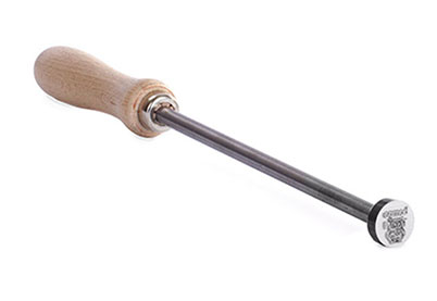 RVS Handbrandstempel 15 mm rond met gravure, voor het onuitwisbaar brandmerken van bijvoorbeeld hout, leer en kunststof.