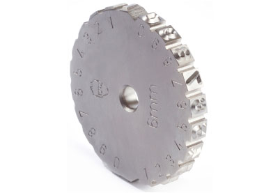 Schijfslagstempel gegraveerd uit gelegeerd gereedschapstaal, extra hoge kwaliteit met een zeer lange standtijd.