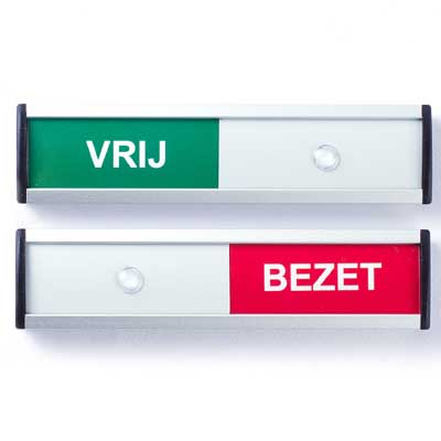 Met een schuifbord kunt u aangeven wat uw (werk)status is: aanwezig, afwezig, vrij, bezet, niet storen, welkom of geen toegang. U kunt de schuifbordjes bevestigen op of naast de deur van uw kantoor, vergaderzaal, toilet of andere ruimte naar keuze.
