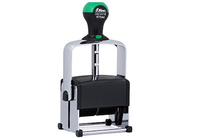Volledig zelfinktend. Standaard voorzien van zwart inktkussen.