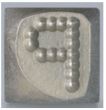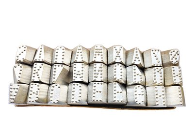 De tekens zijn uitgevoerd in mini stress dit resulteert in een bolletjes inkerving. De afslag is opgebouwd in de vorm van bolletjes.