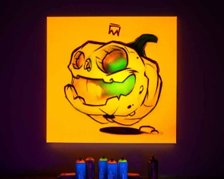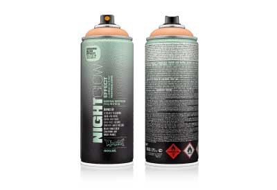 Om het gloed effect het best naar voren te laten komen, gebruik als grondverf Verfspray Diepwit Montana.