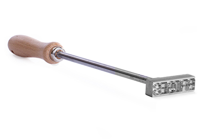 Stalen stempel, stalen steel en houten handvat.