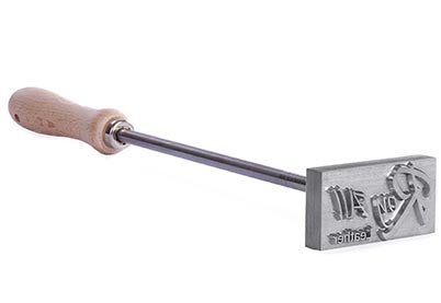 Stalen Handbrandstempel 40 x 70 mm met gravure, voor het onuitwisbaar brandmerken van bijvoorbeeld hout, leer en kunststof.