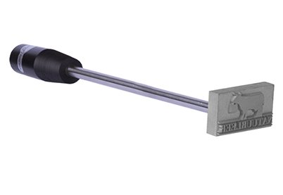 Stalen Handbrandstempel 60 x 70 mm met gravure, voor het onuitwisbaar brandmerken van bijvoorbeeld hout, leer en kunststof.