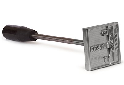 Stalen Handbrandstempel 70 x 70 mm met gravure, voor het onuitwisbaar brandmerken van bijvoorbeeld hout, leer en kunststof.