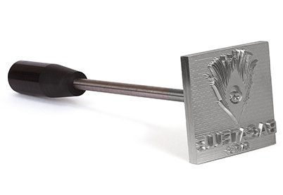 Stalen Handbrandstempel 80 x 80 mm met gravure, voor het onuitwisbaar brandmerken van bijvoorbeeld hout, leer en kunststof.