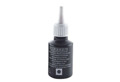 Speciale oliehoudende inkt. Uitsluitend bruikbaar voor een metalen stempel, om het inktkussentje / viltje na te beïnkten.