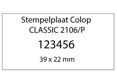 Stempelplaat voor de Colop Classic 2106/P heeft een maximaal afdrukformaat van 39x22 mm, geschikt voor maximaal 4 regels.