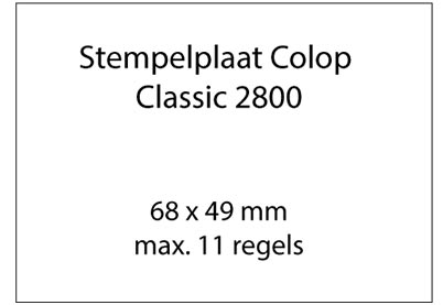 Stempelplaat voor de Colop Classic 2800 heeft een maximaal afdrukformaat van 68x49 mm, geschikt voor maximaal 11 regels.
