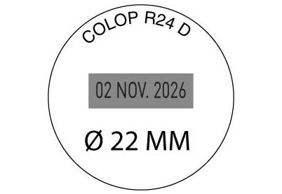 Stempelplaat voor de Colop Printer R24/d heeft een maximaal afdrukformaat van Ø 22 mm.