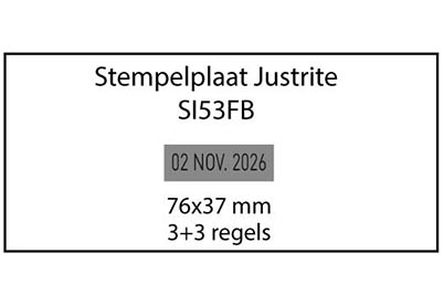 Stempelplaat voor de Justrite SI53FB heeft een maximaal afdrukformaat van 76 x 37 mm.