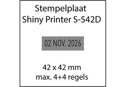 De stempelplaat voor de Shiny Printer S-542D heeft een maximaal afdrukformaat van 42 x 42 mm.
