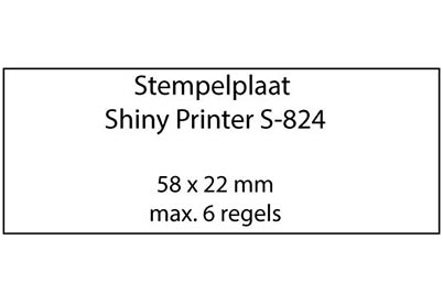 De stempelplaat voor de Shiny Printer S-824 heeft een maximaal afdrukformaat van 58 x 22 mm.