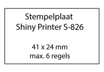 De stempelplaat voor de Shiny Printer S-826 heeft een maximaal afdrukformaat van 41 x 24 mm.