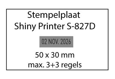De stempelplaat voor de Shiny Printer S-827D heeft een maximaal afdrukformaat van 50 x 30 mm.