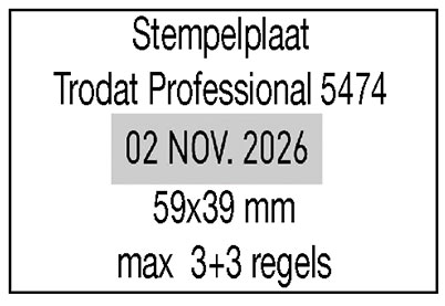Stempelplaat voor de Trodat Professional 5474 heeft een maximaal afdrukformaat van 59x38 mm.