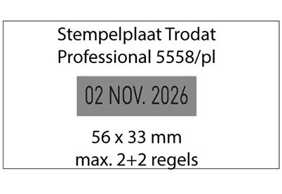 Stempelplaat voor de Trodat Professional 5558/pl heeft een maximaal afdrukformaat van 56x33 mm.