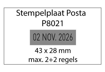 afdrukformaat 43x28 mm, max. 2+2 regels