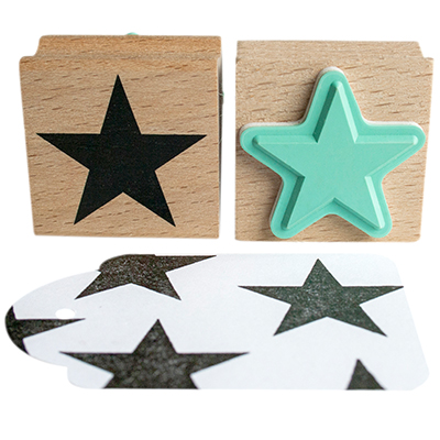 Rubberen stempel op houten montuur. Afdrukafmeting: 30x28 mm.