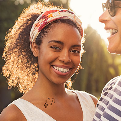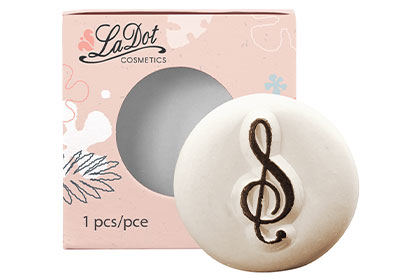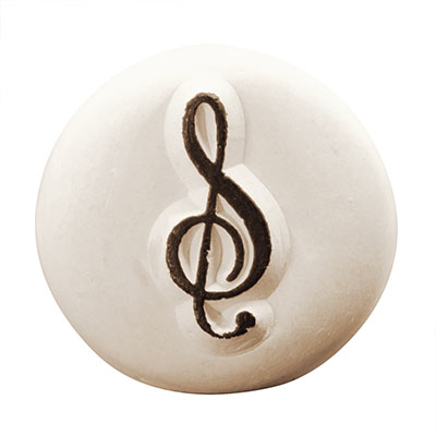 Tattoo stempel muzieknoot, afdruk ca. 4x2,6 cm. Stempel van steen, reliëfhoogte ca. 3 mm.