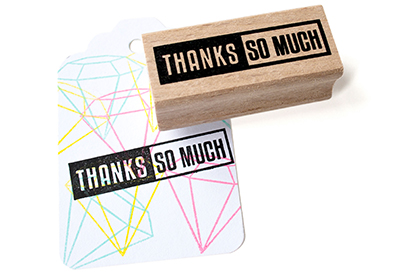 Rubberen stempel op houten montuur. Afdrukafmeting: 49x11 mm.
