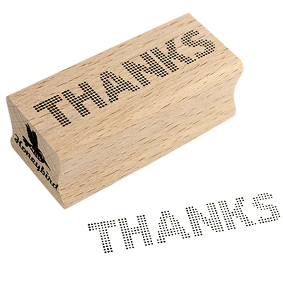 Rubberen stempel op houten montuur. Afdrukafmeting: 47x17 mm.