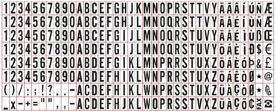 De set bestaat uit; (hoofd)letters, cijfers en tekens. Ook wordt er een pincet bijgeleverd om het samenstellen van de stempel te vergemakkelijken.