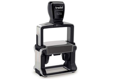Stempel Trodat Professional 5204 is duurzaam, stevig en zelfinktend, heeft een afdrukformaat van 55x25 mm, geschikt voor maximaal 5 regels. Gebruik de Trodat Professional 5204 onder andere als bedrijfsstempel, naamstempel of tekststempel. Het ingebouwde zwarte stempelkussentje is goed voor duizenden afdrukken. De inkt is op waterbasis en is geschikt voor op (niet glad) papier.