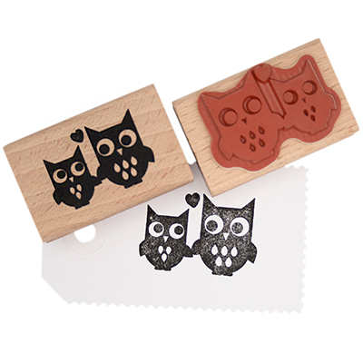 Rubberen stempel op houten montuur. Afdrukafmeting: 42x28 mm.