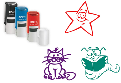 4 stempels, 1 stempelkussen, afdruk 3 cm