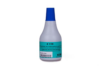 Voedselverpakkingsinkt Blauw 50 ml Noris #119, op alcoholbasis deze inkt is sneldrogend en geschikt voor het stempelen van niet-poreuze voedselverpakkingen. Andere eigenschappen van de inkt zijn lichtvast en waterresistent.
