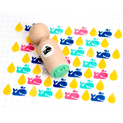 Rubberen stempel op houten montuur. Afdrukafmeting: 11x8,6 mm.