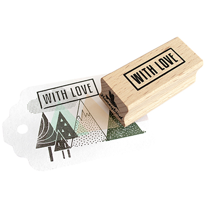 Rubberen stempel op houten montuur. Afdrukafmeting: 35x11 mm.