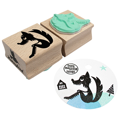 Rubberen stempel op houten montuur. Afdrukafmeting: 28x31 mm.