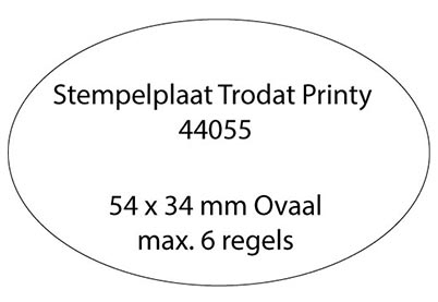 Stempelplaat voor de Trodat Printy 44055 heeft een maximaal afdrukformaat van 54x34 mm, ovaal.