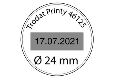 Stempelplaat voor de Trodat Printy 46125 heeft een maximaal afdrukformaat van 24 mm rond.