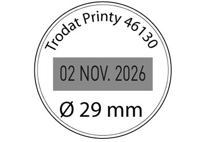 Stempelplaat voor de Trodat Printy 46130 heeft een maximaal afdrukformaat van 29 mm rond.