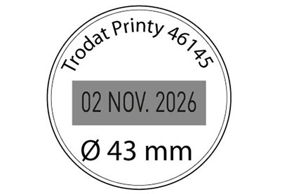 Stempelplaat voor de Trodat Printy 46145 heeft een maximaal afdrukformaat van 43 mm rond.