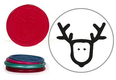 Zelfklevende lakzegel: Rendier van 25 mm afdruk. Afmeting van de lakzegel inclusief de buitenrand ca 29 mm.